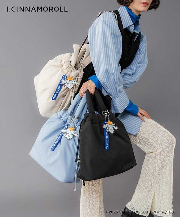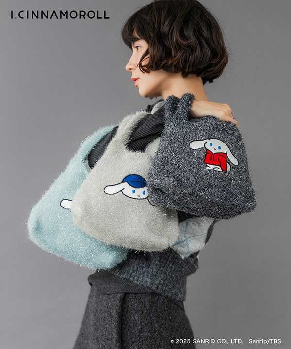 「アイシナモロールラメショッパー」は6,930円(税込)、LIGHT BLUE、IVORY、BLACKの3色展開。さりげないきらめきが気分を高めてくれます。