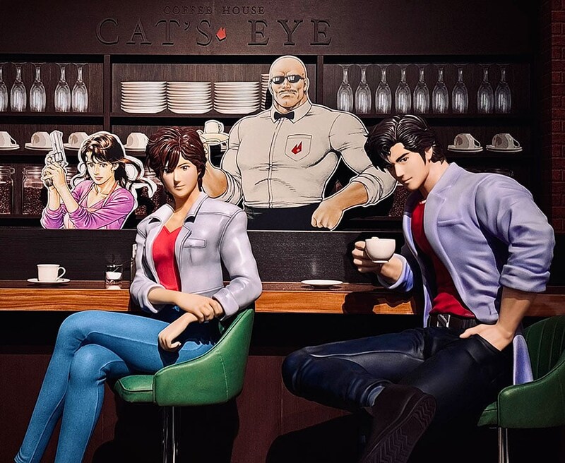 リョウ、香、海坊主、美樹が勢ぞろいした「シティーハンター大原画展~FOREVER, CITY HUNTER!!~」内「喫茶キャッツ・アイ」 (C)北条司/コアミックス1985