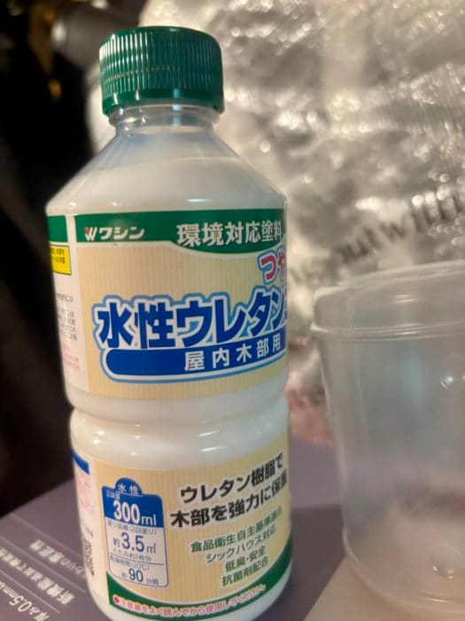 ウレタンニスは2時間くらい乾かしてから、もう一回塗ったから2度塗りにしたよ〜!