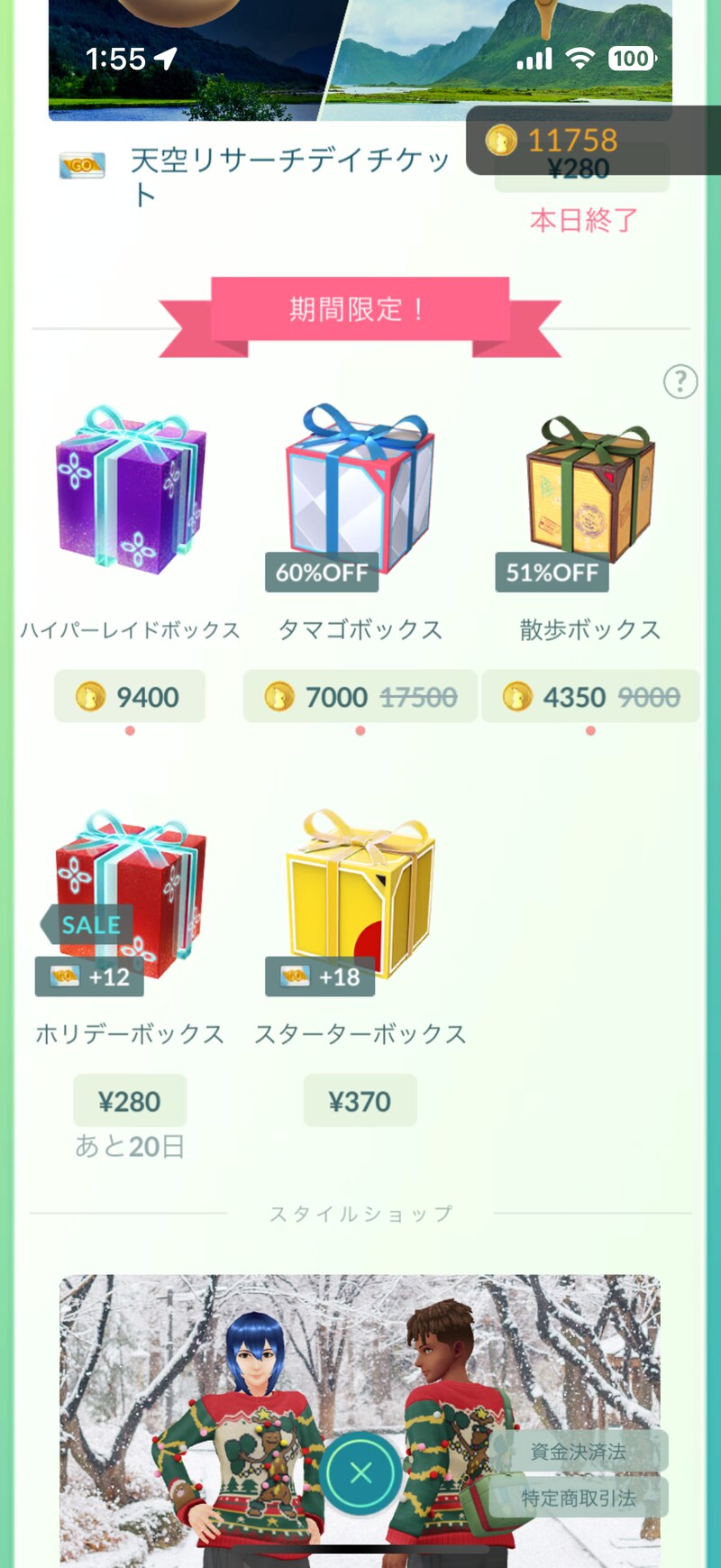 2026年1月9日あたりまで『ポケモンGO』のゲーム内ショップにて「ホリデーボックス」という超お得なセールボックスが販売中です。