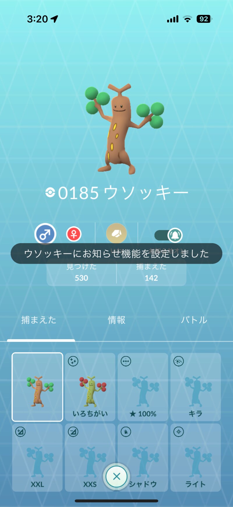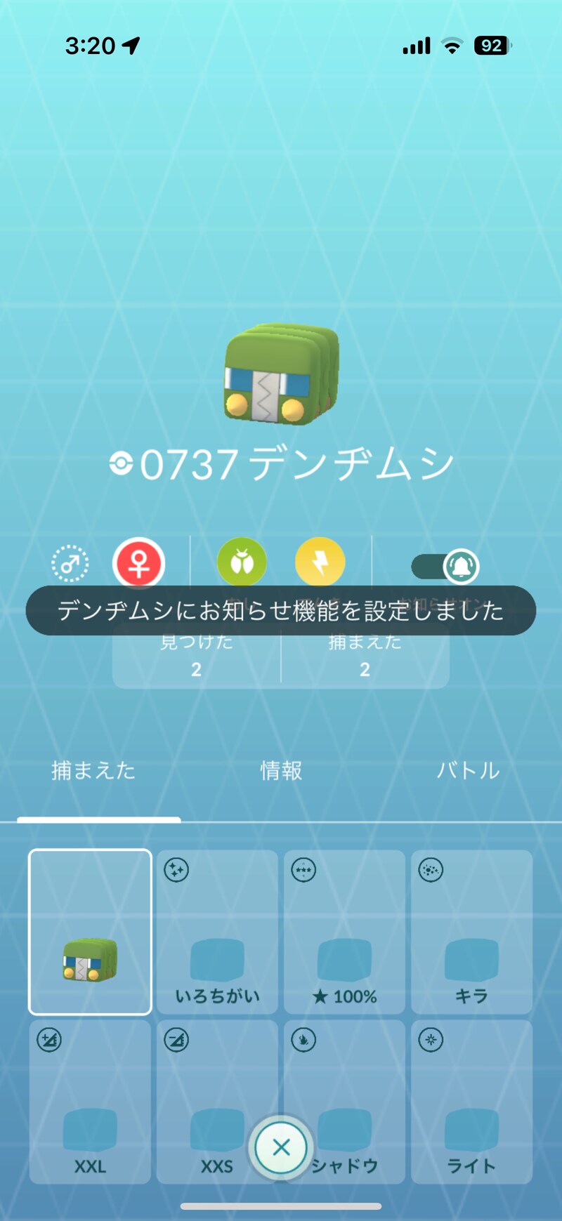 ▲狙いたいポケモンのお知らせ機能をオンにすると……。