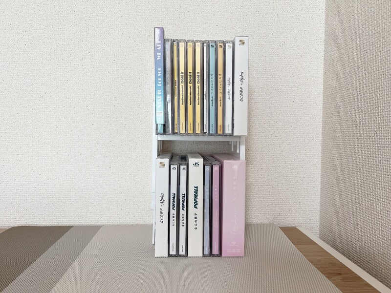 タイプAは奥行きのある棚で前後収納、タイプBは高さ重視の棚で上下収納と、用途に応じて使い分けられます。組み立ては若干の注意点(パーツの刻印向き)があるものの、慣れればスムーズ。実際にCD18枚を収納した結果、収納幅が約24cmから13.5cmに半減し、省スペース化に成功しました。SNSでも「売り切れてほしくない」「スペースが半分になった」と話題の逸品です。