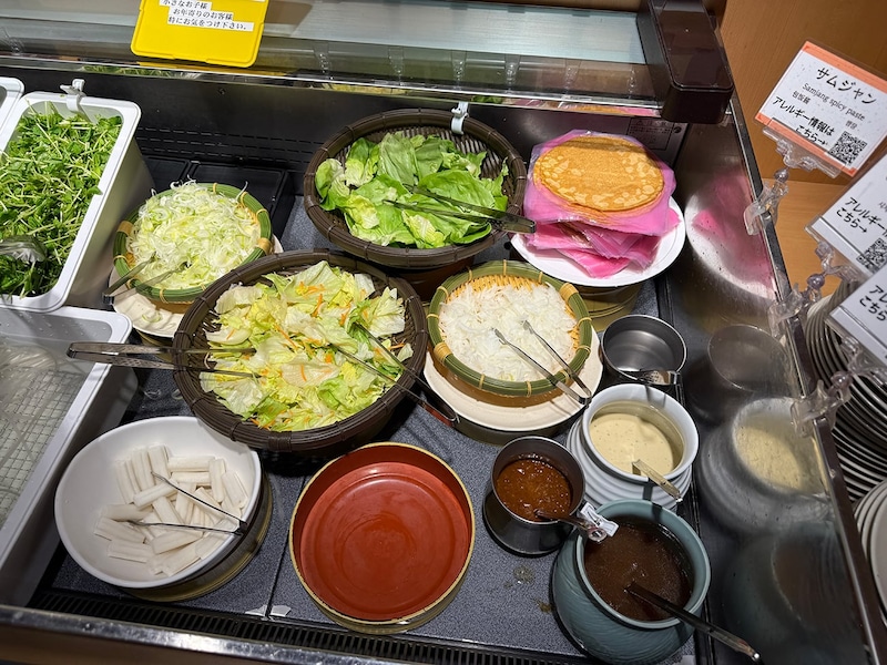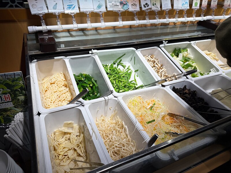 となると、自然と目が向くのは野菜コーナー。普段のしゃぶ葉だと絶対的に食べ放題の肉が主役になり、野菜は脇役になりがち。むしろなるべく食べたくないもんね。少しでも肉で胃袋を満たしたいですから。