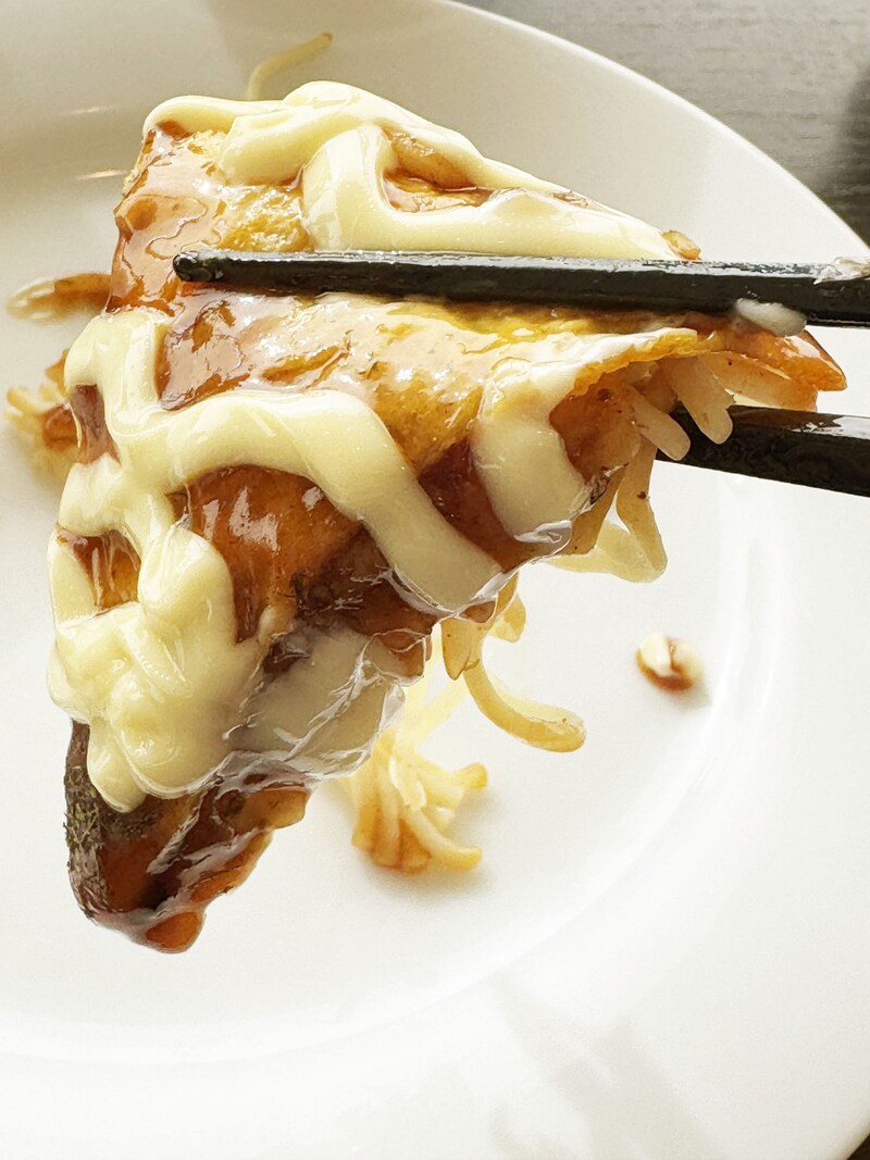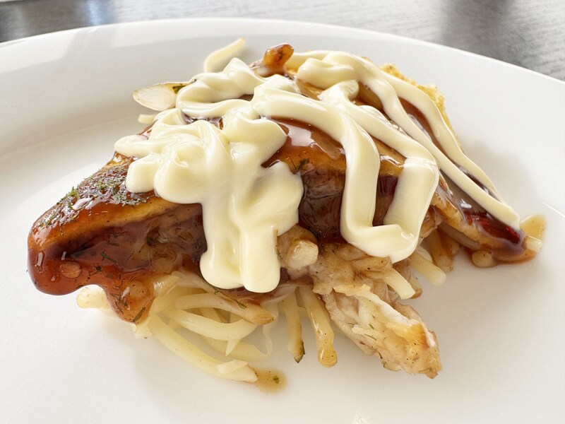 置かれている場所は皿なので、鉄板ではありません。そのため、冷えないようにたっぷりとソースが塗っているのでしょうか。温かくて良きです!