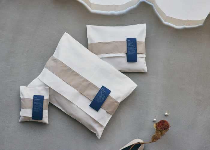 リニューアルされたギフトラッピングは、廃材を再利用したリサイクル・プレコンシューマー・コットン生地(GRS認証)を使用。