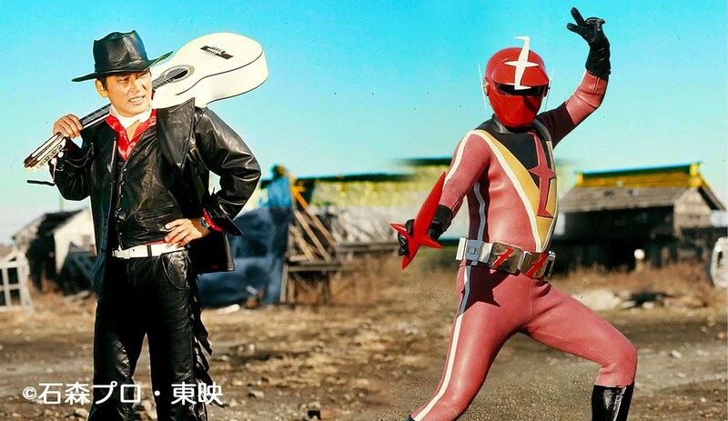 ギターをかついだ姿の主人公「早川健」(左)と、変身後の「ズバット」。12月17日発売の「快傑ズバット Blu-ray BOX」より (C)石森プロ・東映