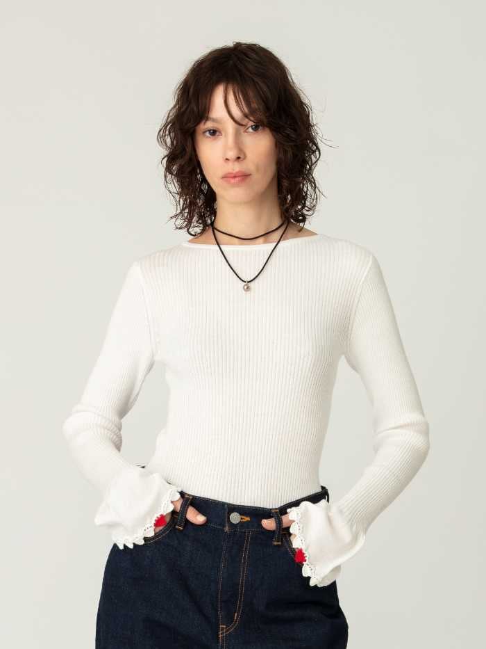 HeartCrochetRibPullover/White,Black/28600円