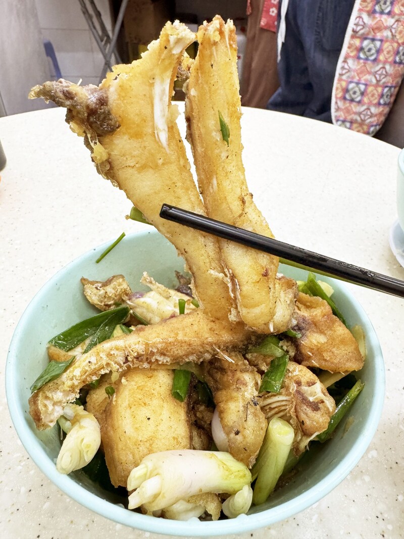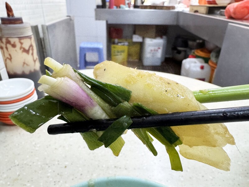 なにより、器に入りきれないほどの魚・長ネギ・ショウガの山に驚かされます。かなりの山盛りです。しかも魚が大きくカットされているので、存在感を強く感じる盛りです。