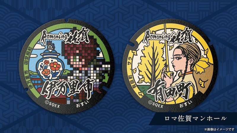 伊万里には、JR伊万里駅前に『ロマンシング サガ リ・ユニバース』のキャラが描かれた有田焼陶板と『サガ エメラルド ビヨンド』の御堂綱紀が描かれたマンホールが設置され、有田には、JR有田駅前に『サガ スカーレット グレイス』のキャラが描かれた有田焼陶板、泉山弁財天神社境内には『ロマンシング サ・ガ3』のサラが描かれたマンホールが設置されています。