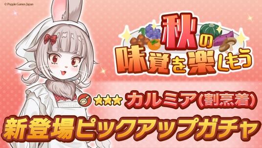 あわせて、★3料理人「カルミア(割烹着)」が登場するピックアップガチャも開催中です!
