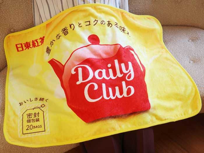 ブランケットはデイリークラブのパッケージ柄で、裏面はポットのランダム柄がキュートです。
