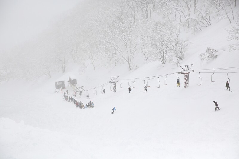 ここは、新潟県妙高市の関温泉スキー場。日本屈指の豪雪地、妙高高原に降り積もるパウダースノーをどこよりも早くからウリにして、スノーボーダーをいち早く受け入れ、パウダーブームを牽引してきたスキー場の草分け的存在だ。昨今は、インバウンドのジャパウフリークに支持されて、平日休日関係なく、大勢の外国人観光客がリフトに列をなす。関にやってくるスキーヤー、スノーボーダーはみんな滑走技術が高い。うまいのだ。