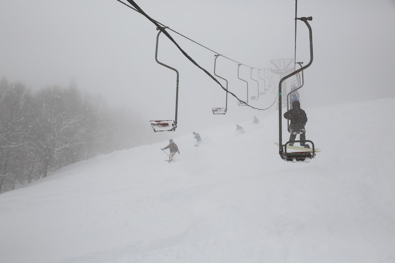 リフトに乗った客の板が斜面に接触するほど、'24-25シーズンは豊富な降雪に恵まれた。ケーブルが重量でたわまないように、リフトは1席あけての乗車となっていたほどだ。