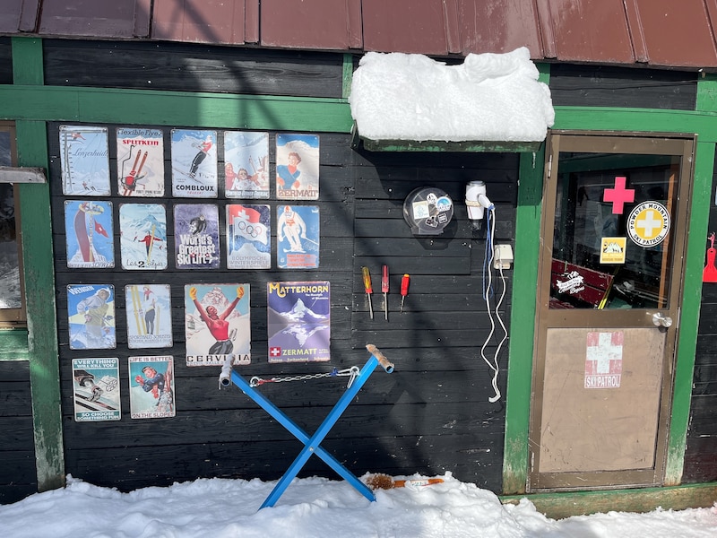 こちらが井上幹夫社長。ノルディックセーターに粋なスカーフをあわせ、ウールのパンツに足元はザンバランのイタリア製革ブーツ。ここは欧州リゾートか?と思わせる装いだが、バックは豪雪。今日もこうしてチケット売り場に立つ。