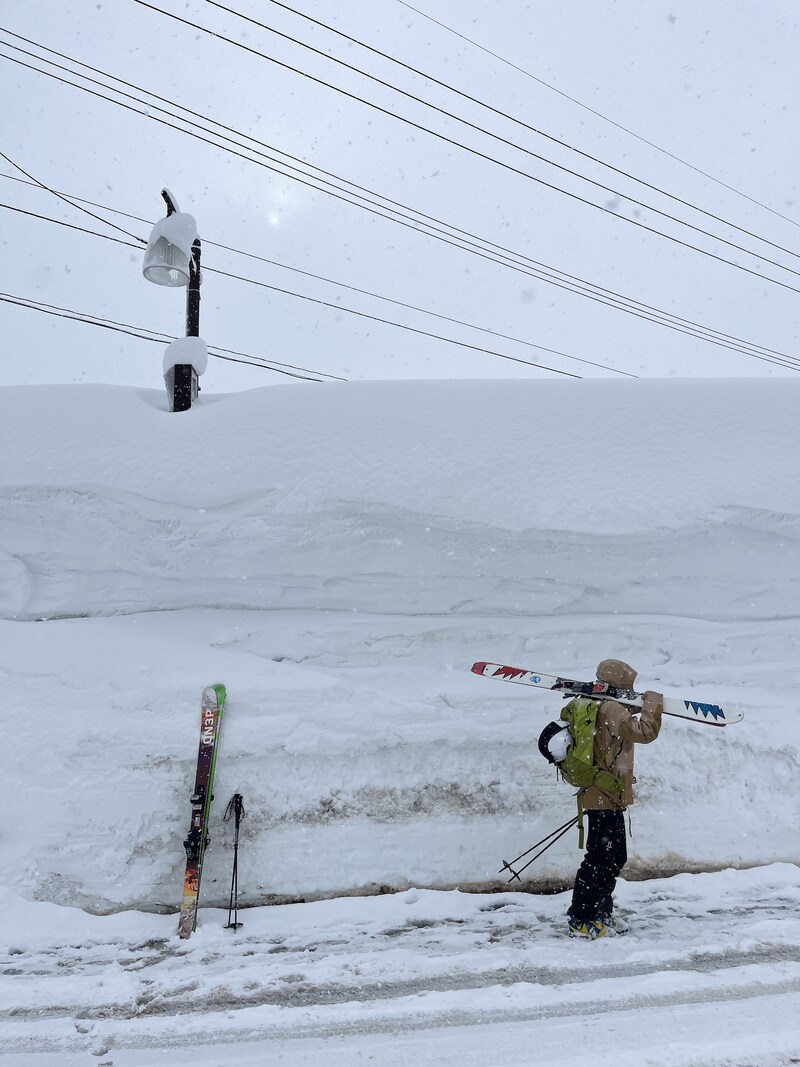 美味しい手作り料理と家族愛に満たされた取材班は、お礼の挨拶のため、レストランから井上社長のいる事務所へと滑り降りた。途中のコースは滑走ラインだらけ。パウダーをたらふく食べてお腹いっぱいになったであろう外国人スキーヤー、スノーボーダーは、すでにゲレンデから姿を消していた。