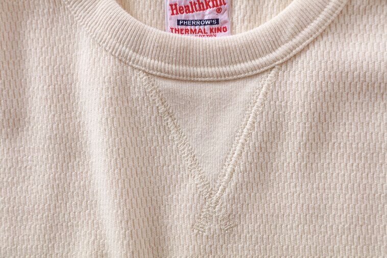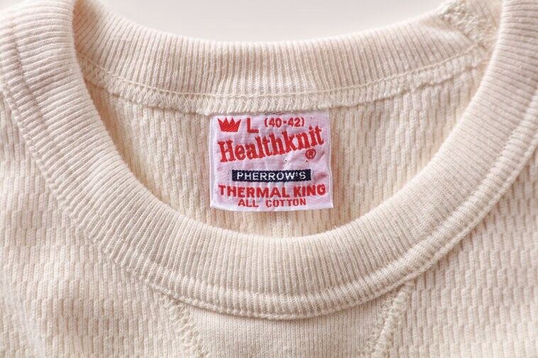 アメリカ発のカットソーブランド、HealthknitとPherrow’sの初のコラボレーション。創業120年もの長い歴史を誇るHealthknitが1960年代に作られていた“THERMAL KING”をPherrow’sの定番であるVガゼット付きTシャツと融合させた前V仕様のサーマル。肉厚サーマル生地にクラシカルなヴィンテージディテールが映える渾身の1枚だ。