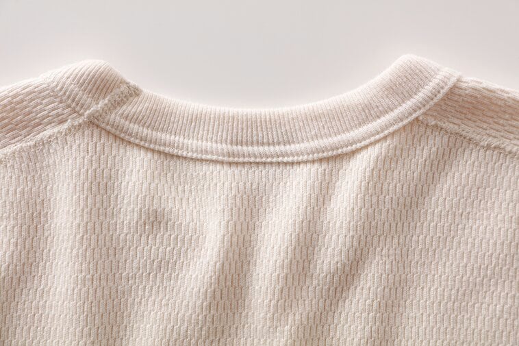 ヴィンテージを解析し、特注糸から作り上げた肉厚なワッフル生地は、保温性、吸水性に優れ、着用ごとにふんわりと肌へと馴染む特有の経年変化が楽しみな1枚。ヴィンテージサーマル同様タイトなフィッティングに設計されているため、当然インナーとしても活躍必至だが、肉厚な生地であることから1枚でコーディネイトしてもサマになる。パッケージデザインは1960年代の当時のデザインを再現している。¥15,180_