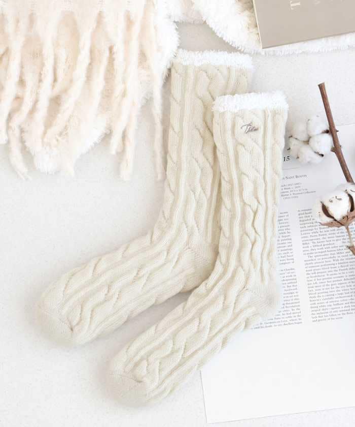ちょっとした贈り物には、もこもこ二重編みソックスがおすすめ。内側はボア素材で足元をしっかり保温しつつ、外側は可愛さを忘れないデザインです。