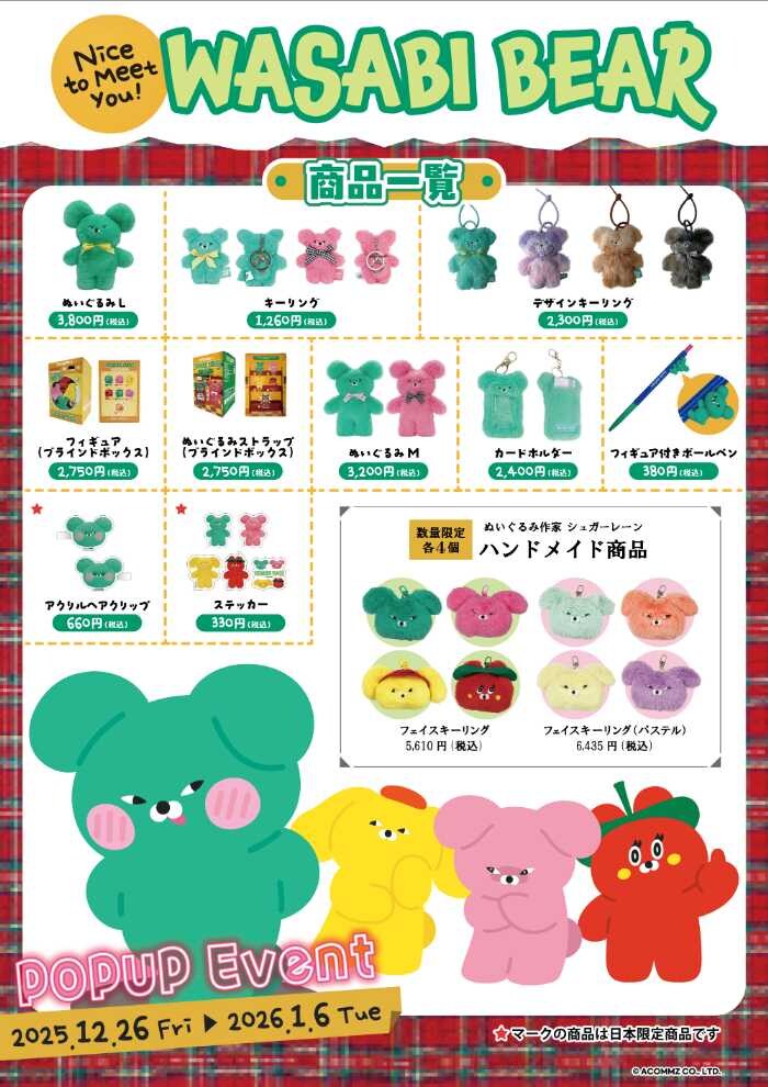 韓国でZ世代を中心に人気を集めるキャラクター『ベリゴム』と『ワサビベア』が、ついに日本で初コラボ。年末年始の新宿ルミネエストを舞台に、心がゆるむ可愛さと、ちょっぴりいたずらな魅力が詰まったポップアップイベントが開催されます。写真映えスポットや限定アイテムなど、冬のお出かけが楽しくなるコンテンツが盛りだくさんです♡