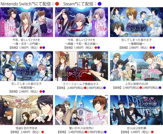 ボルテージSteam配信作品ページ:https://store.steampowered.com/search/?publisher=Voltage%20Inc.