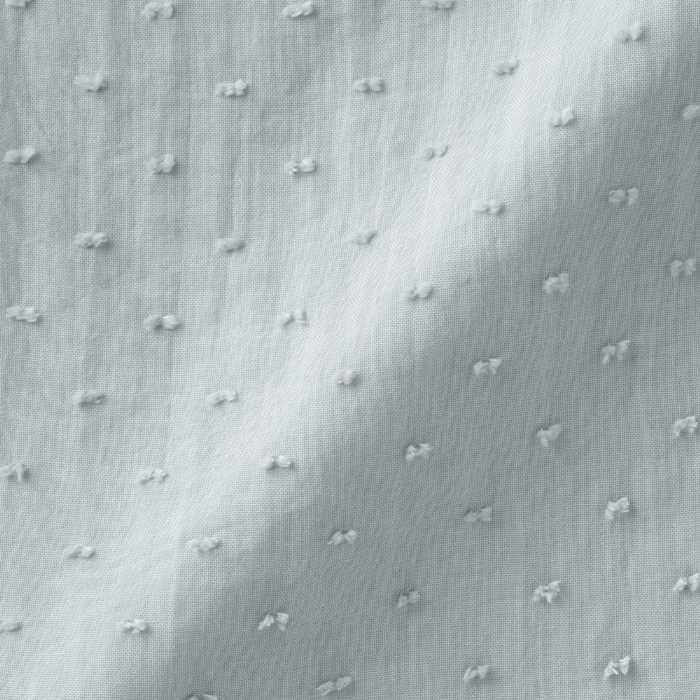 二重ガーゼ生地をベースに、凹凸のあるドビー織りでドット柄を表現。通気性の良さとやわらかな肌あたりはそのままに、軽やかな立体感が加わりました。