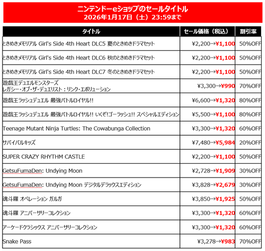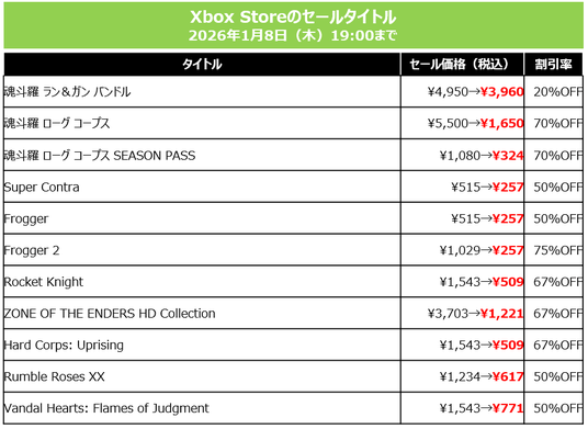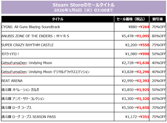 株式会社コナミデジタルエンタテインメント(以下、KONAMI)は、ニンテンドーeショップ、PlayStation(TM) Store、Steam Store、Xbox Storeにおいて、ダウンロード版ゲームを最大80%オフでお得に購入できるKONAMI「HOLIDAY SALE」を開催中です。