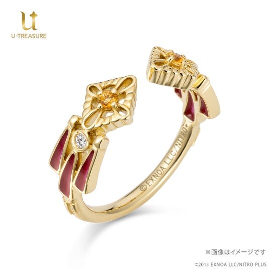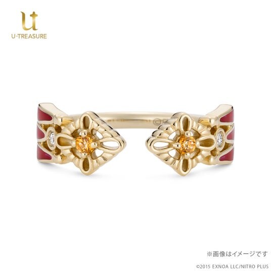 このたびの新作は、「一文字則宗」を宝石のカラーやディテールで表現したフォークリング(指輪)です。素材はシルバー925、K10イエローゴールド、K18イエローゴールド、プラチナ950の全4種類で、色味や価格をお好みに合わせてお選びいただけます。