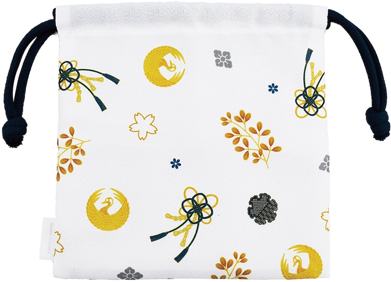 また、ここでしか手に入らない豪華な限定特典も注目。商品は、鶴丸国永が描かれた専用の特製デザインボックスに入れて提供される。さらに、紋があしらわれた「恵方包み(小ふろしき)」と、小物の整理に便利な「巾着袋」の2点が同梱される。どちらも日常使いしやすいサイズと素材で、巾着袋は裏表で異なるデザインを楽しめる。