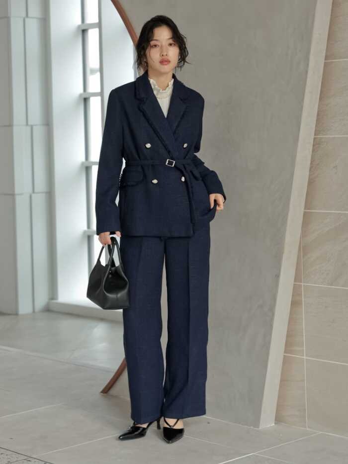 セレモニーからオフィス、休日まで幅広く対応できるのが、このコレクションの魅力。上下別でも着回しやすく、コーディネート次第で印象を自在にチェンジできます。