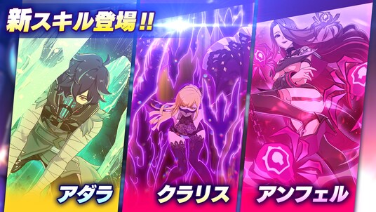 すでに実装されているキャラクターのうち「アダラ」「アンフェル」「クラリス」に新スキルが実装されます。なお、追加されるスキルは同スロットにある既存のスキルとどちらを使うのかを選択することになります。
