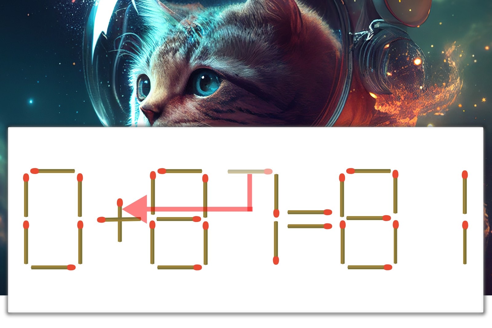 「7」を別の数字に変化させると答えが導き出せます。「7」のマッチ棒を1本移動して、「-」を「+」にしてみましょう。すると、「0+81=81」が成立します。
