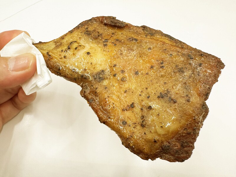 ガッと大量の牛肉を食べつつ、その余韻が残るうちにチキンレッグをかじる。