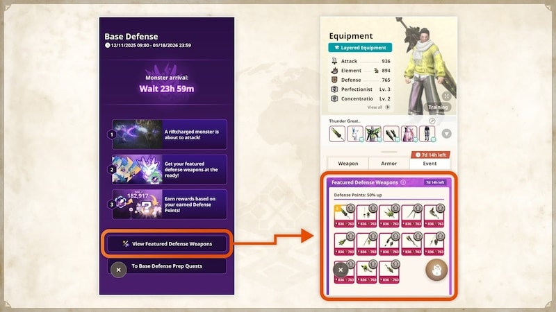 拠点要撃戦とは、探索拠点を舞台に同じ拠点に集うハンターたちと協力し、通常よりもはるかに手ごわい“次元臨界モンスター”に挑むコンテンツ。