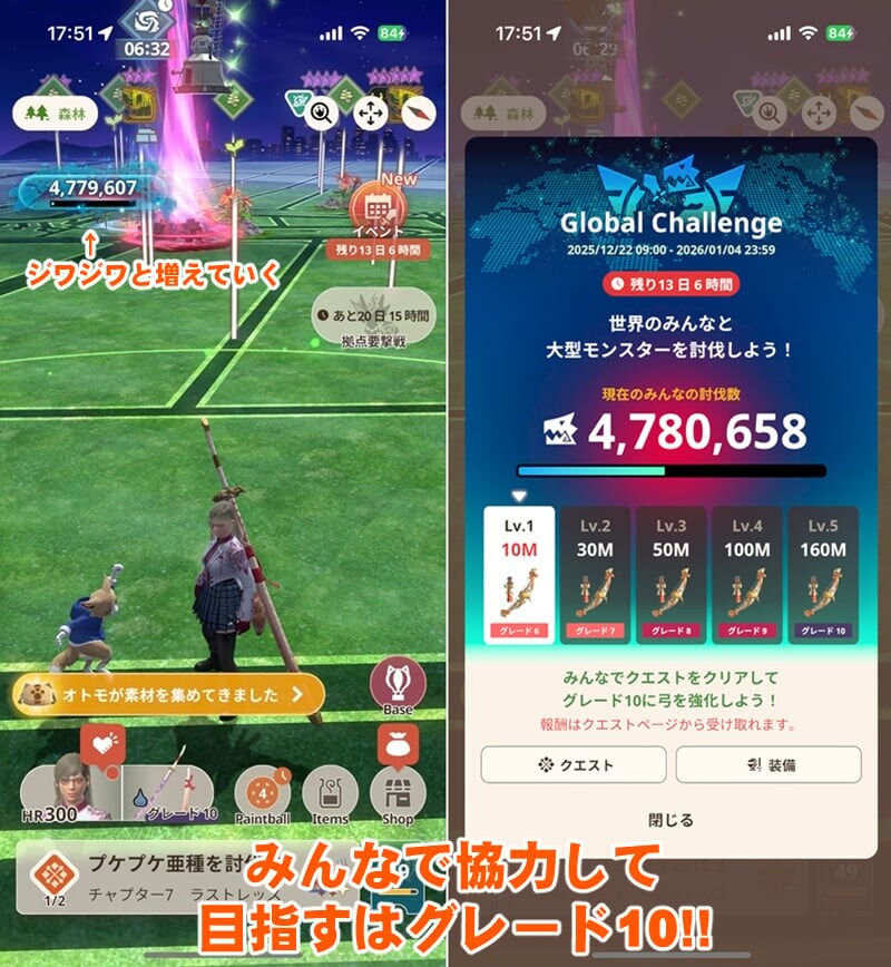 本日(12/22)より始まっているグローバルチャレンジに挑みつつ、拠点要撃戦に向けてともに狩りを続けていきましょう!!