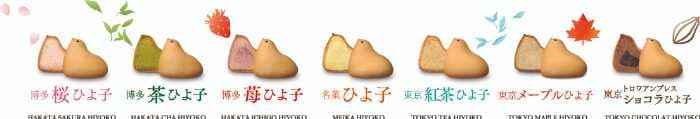 博多限定の「桜ひよ子」「苺ひよ子」「茶ひよ子」、東京限定の「紅茶ひよ子」「メープルひよ子」「ショコラひよ子」、そして定番の「ひよ子」が揃った7個入り。