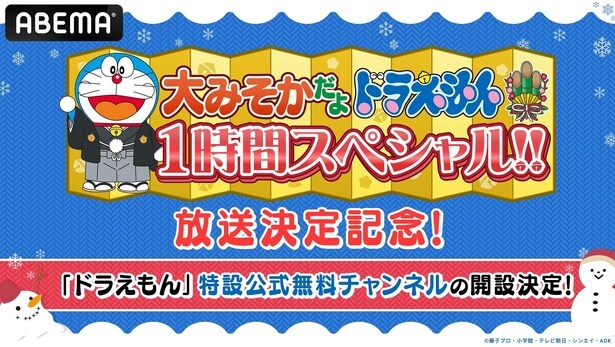 ABEMAが、“大みそかだよ!ドラえもん1時間スペシャル”の放送を記念し、12月29日(月)より「ドラえもん」特設公式無料チャンネルを期間限定で開設する。