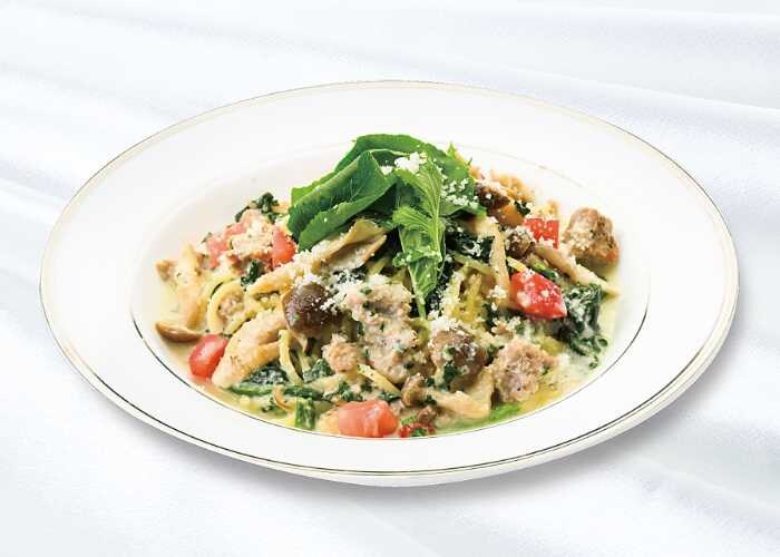3種のきのこをペーストとソテーで使用。濃厚なクリームソースにポークの旨みが加わり、深い味わいを実現。