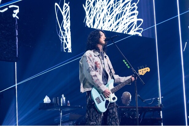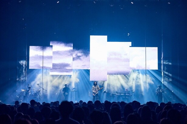 だが、一連の思いを語って「皆さん一人ひとりの日常生活に、何らかの陽の光が射すようなことを祈りながら、引き続き今日は演奏していきます」と伝えてからの後半戦では一転。「なくしもの」では紗幕に映るモノクロの街に光が射して色づき、ロックに駆け抜ける「私が明日死ぬなら」で生きていく尊さを“約束だよ”と訴えれば、間髪いれず続いた「青のすみか」ではクラップと大合唱が巻き起こる。