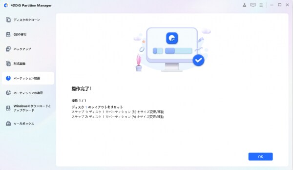 将来的なストレージ構成がまだ明確でない場合でも、4DDiG Partition Manager を使用すれば、状況に応じて柔軟にパーティション容量を調整できます。パーティション管理を手軽かつ安全に行いたい方に、ぜひ一度お試しいただきたいツールです。