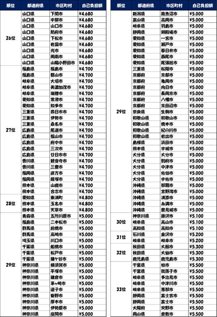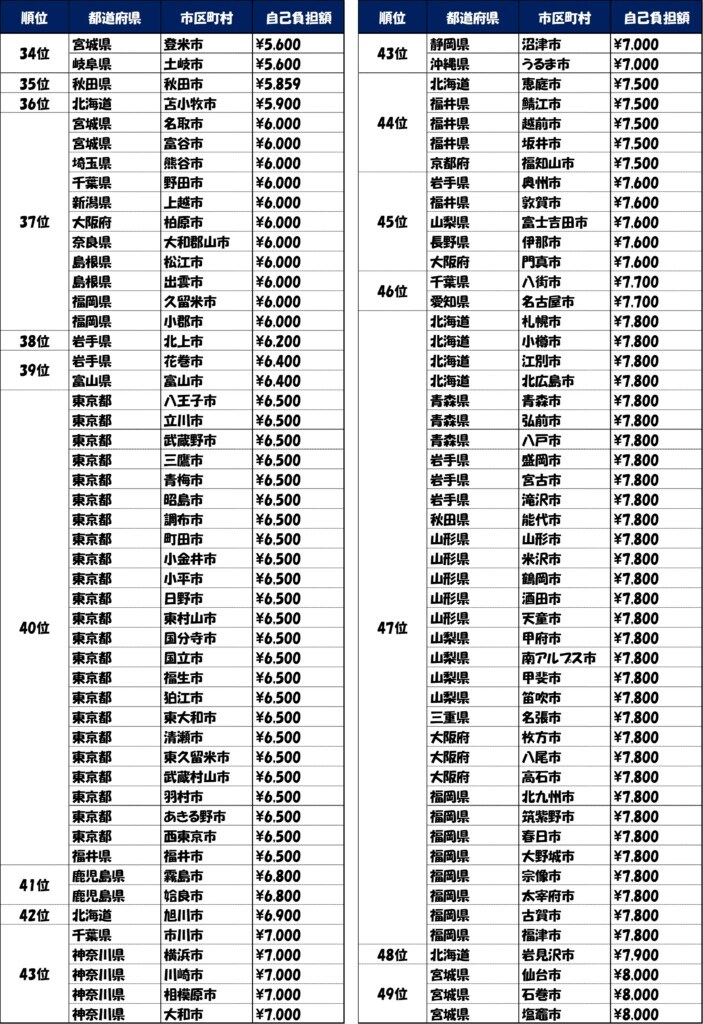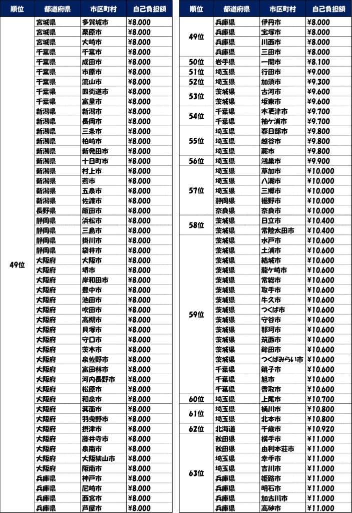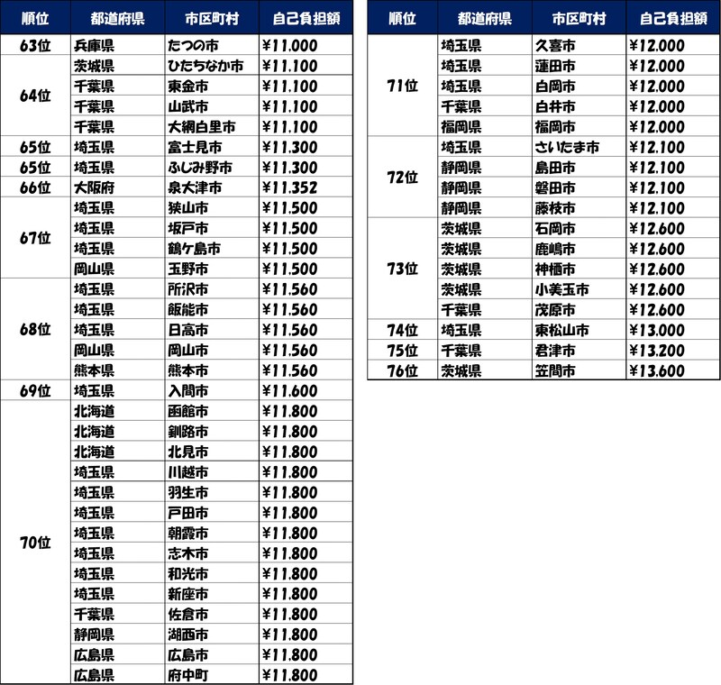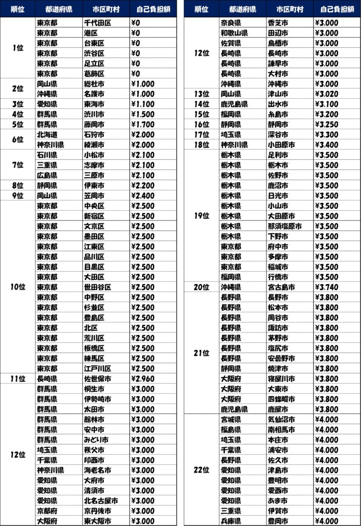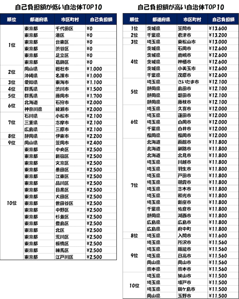 調査によると、最も高い茨城県笠間市では13,600円、一方で東京都の6区(港区、渋谷区など)では無料であった。住んでいる場所が違うだけで、1万円以上の差が生まれているのである。