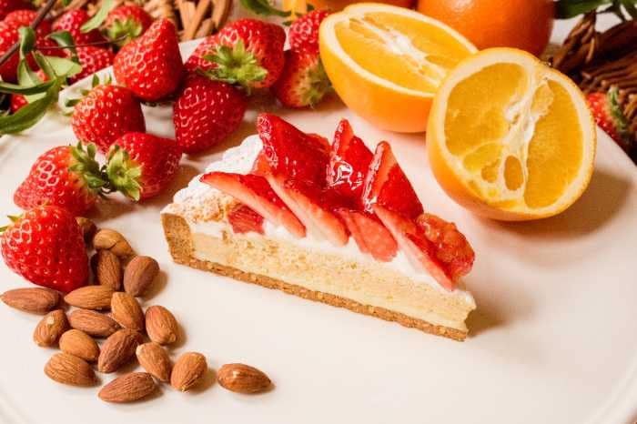 「きらぴ香」や「紅ほっぺ」を使用したタルトは、各イチゴの個性を引き立てるために、クリームやカスタード、ナッツなどを巧みに組み合わせています。
