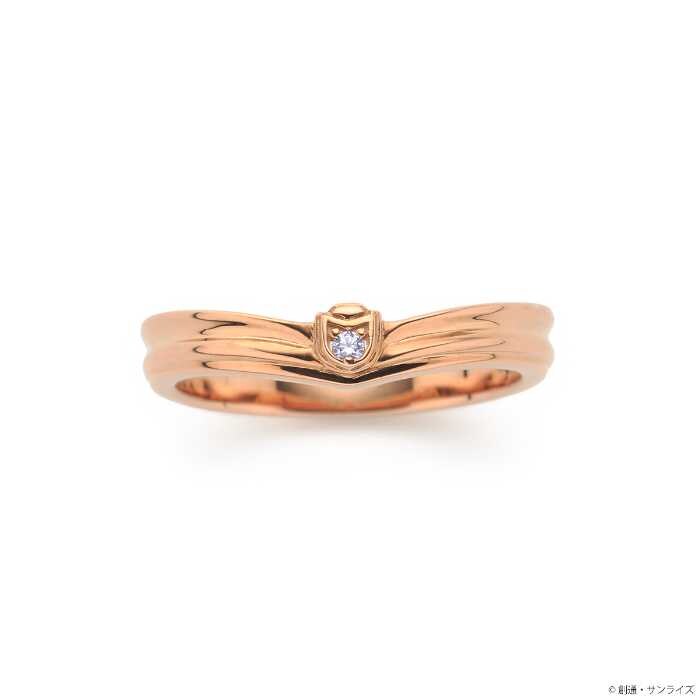 オルガ・イツカモデルは、首元のスカーフを思わせるV字型フォルムに、旗艦イサリビをモチーフとして中央にデザイン。シルバー925にピンクゴールドコーティングを施し、柔らかく上品な印象に仕上げています。
