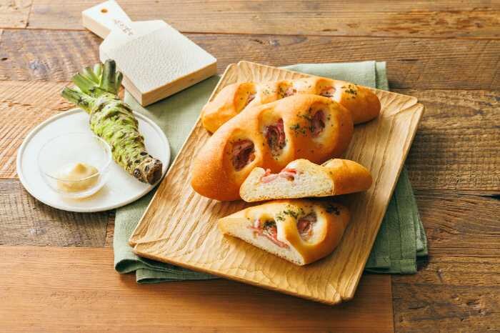 「わさびマヨベーコンスティック」(税込340円)は、もちっとした生地にベーコンとわさび入りマヨネーズを包み込んで焼き上げた一品。後味に広がる爽やかな辛みが特徴です。