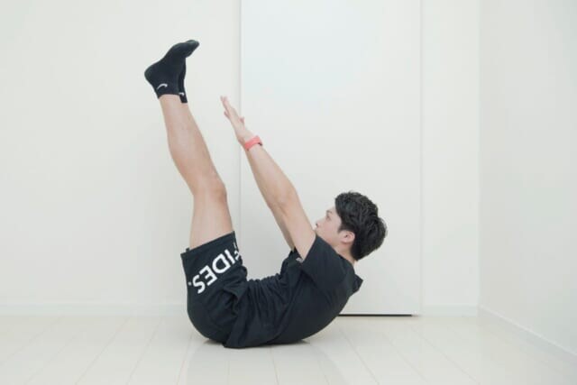(2)両手を両足に近づけるようなイメージで上半身を持ち上げていく