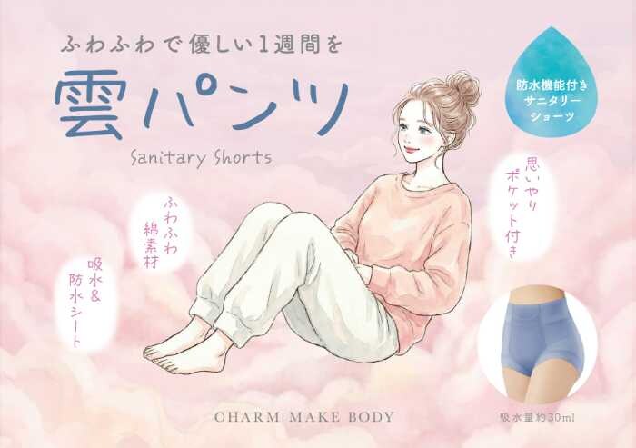2026年4月8日(水)、女性のための新感覚サニタリーショーツ「雲パンツ」が登場します。体調が揺れやすい一週間を、雲のように軽やかに過ごすために開発されたこのアイテム。吸水性と心地よさを兼ね備え、ふわっと軽い履き心地で、安心して過ごせるサニタリーショーツとして注目されています。肌に優しく、心地よい綿素材で、毎日のストレスを和らげてくれる“雲パンツ”に期待大!