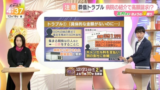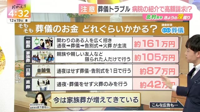 12月19日の深掘りは、葬儀トラブルの話でした。2024年、「お葬式」のトラブル件数は過去10年で最多だったようで、今年も現時点では同水準で増えています。