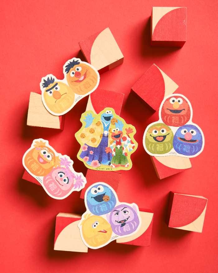 今回のテーマは「NIPPON-JAPANESESTYLESOOUVENIRS-」。波柄、市松模様、麻の葉といった日本伝統の和柄や、着物、だるまといったモチーフを、セサミストリートマーケットらしく明るくアレンジ。