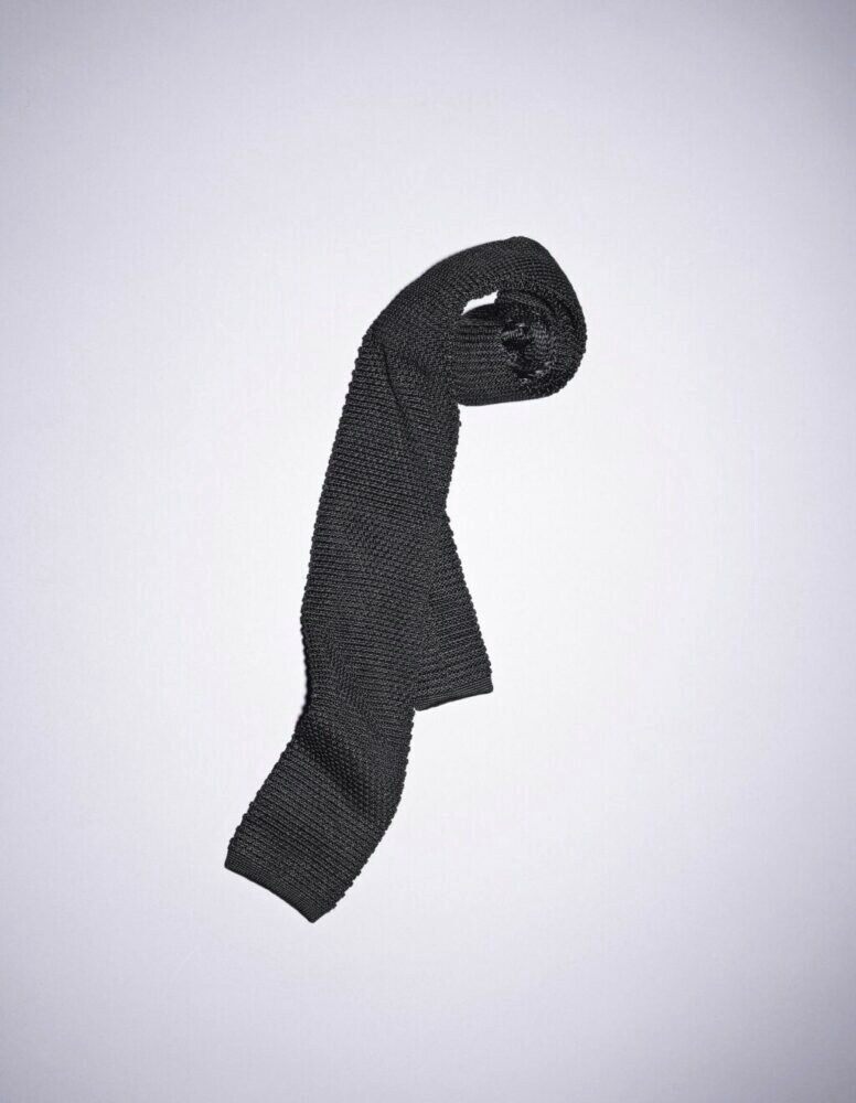 表面にはニット特有の柔らかな質感と程よい光沢があり、クラシックな佇まいにさりげない華やぎを添えてくれる。丁寧な縫製と老舗ならではの精緻な仕事が、日常の一本を確かな存在感へと昇華させるのだ。ここでも、無難な色ではなく、装いに強度を与える“黒”をあえて推したい。ブランドが積み重ねてきた伝統と、黒が持つ普遍的な力。そのふたつが共鳴したとき、単なる小物ではなく、スタイルの核となる逸品へと変わる。もちろん、急な冠婚葬祭にも対応できる汎用性の高さも記しておきたい。1万5730円(メイン TEL03‒32