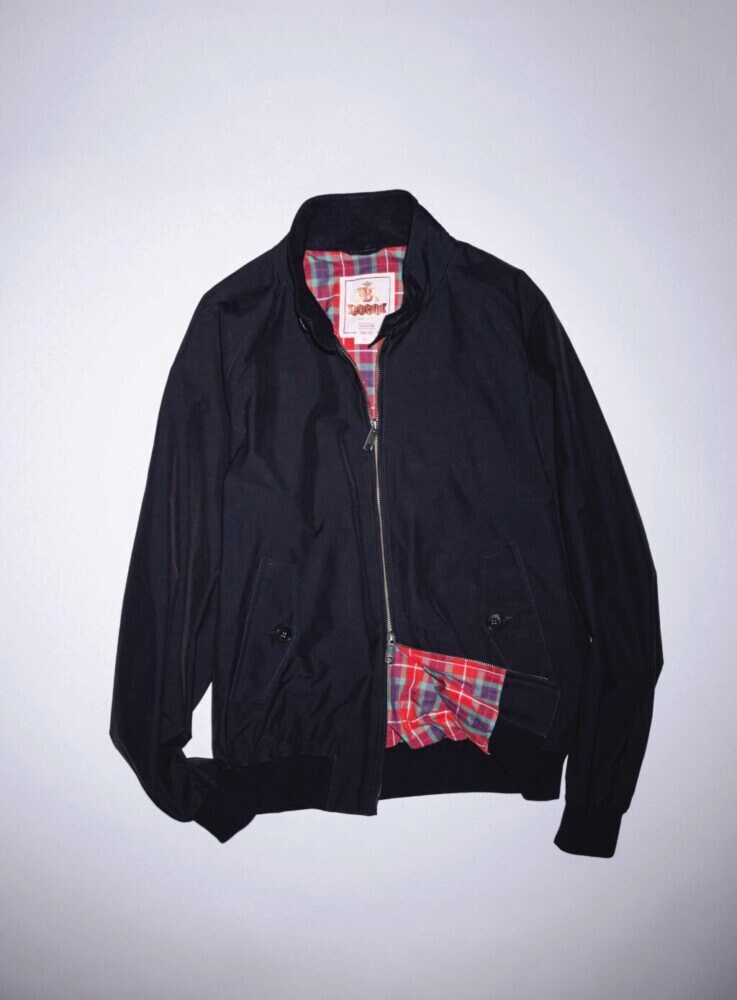ハリントンジャケットの代名詞[G9]。1937年、英国マンチェスターで誕生し、スティーブ・マックイーンやジェームズ・ディーンといった時代の寵児たちが愛用したことで、瞬く間にスタイルシンボルとなった。ライニングのフレーザータータン、ラグランスリーブ、アンブレラカットなど、象徴的なディテールの数々もまた、このモデルを不動の存在へと押し上げた。