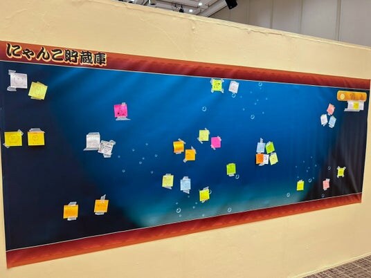 そのほかにも、ちびネコを探し出すミッションや、来場者が好きなにゃんこを描いて貼り付けられる「にゃんこ貯蔵庫」など、参加型の展示が用意されています。展示を見るだけでなく、体験できる仕掛けもあり、会場内には自然と笑顔が広がっていました。